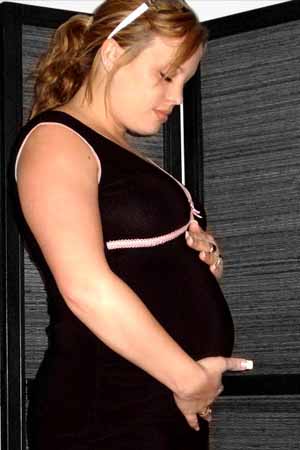 Кровоток у беременной значительно усиливается, поэтому начинают сильнее проступать венозные рисунки и бугорки Монтгомери, а так же набухает грудь, которая становится особо чувствительной.